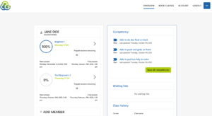 In the Overview section you will see all the classes currently being attended. If there is anything requiring your attention it will be marked with a yellow box. If your child is identified as being ready to move, then you can select move.